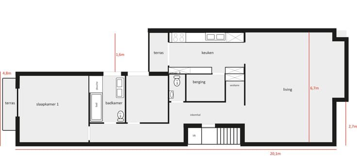 € 1,600/month, min. 2 bedrooms
